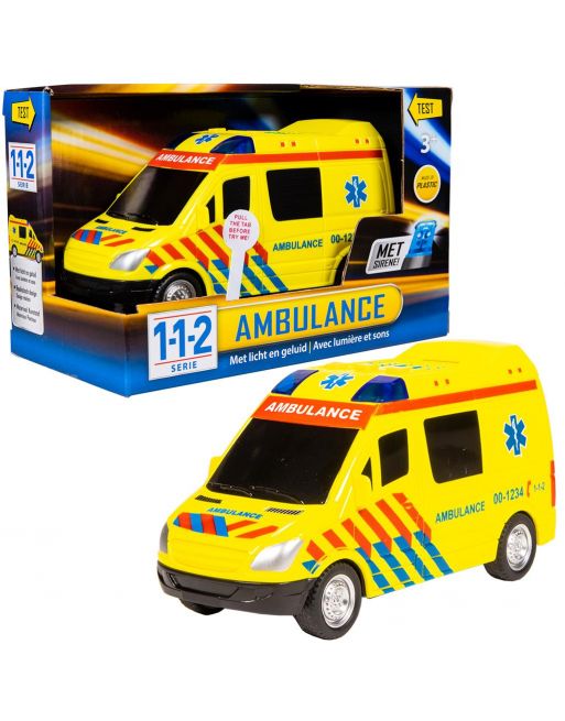 Rescue Racer, in ambulance-uitvoering. Met licht-effecten en sirenegeluid. Afmetingen: 18 x 8 x 10,5 cm. Wordt geleverd in try-me verpakking: inclusief 3 AG-13 knoopcelbatterijen. Geschikt voor kinderen vanaf 3 jaar.