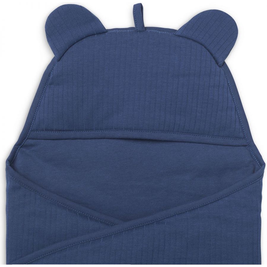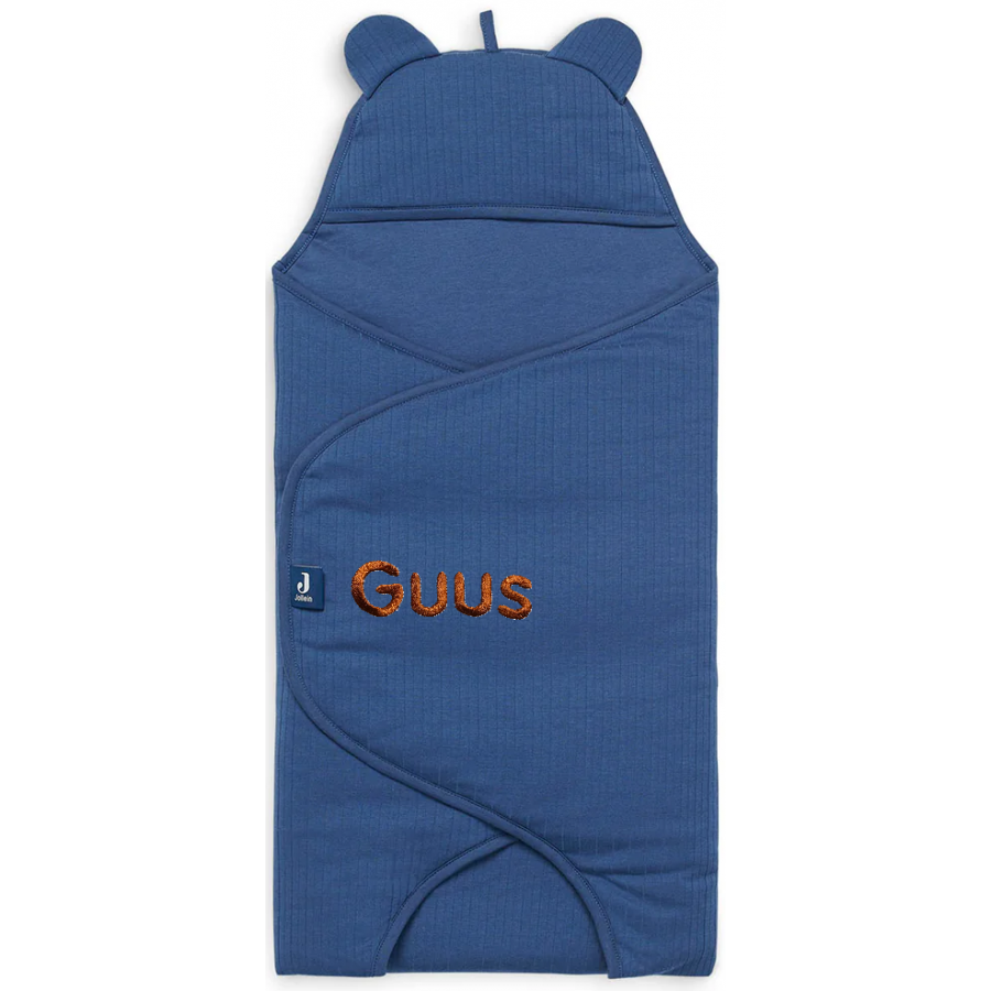 Wikkeldeken met gegarandeerd mega hoge cutenessfactor. De stof is heeft een ribbeltje aan de buitenkant en heerlijk comfortabel zacht aan de binnenkant en op de capuchon zitten schattige oortjes.