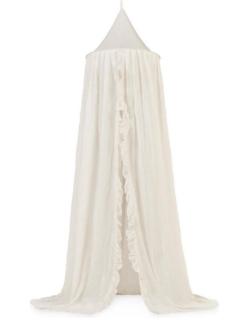 Deze prachtige vintagelook klamboe met ruffles maakt van het babybed een knusse slaapplek. En je zult zien: zodra je de klamboe hebt opgehangen is de babykamer af. Het geeft sfeer en geborgenheid
