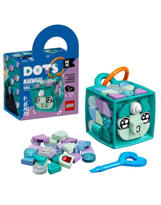 Verras kinderen die van zeedieren houden met deze superschattige LEGO DOTS Tassenhanger narwal (41928) set! Deze accessoireset is snel in elkaar te zetten, zodat jongens en meisjes hun eigen magische narwalhanger voor aan hun tas of rugzak kunnen maken. Ideaal accessoire voor zelfexpressie! Deze tassenhangerset bevat een kleine kubus met plaats voor een heleboel leuke ontwerpen, een siliconen bevestigingsring en een kleine sleutelvormige tegelwipper. Kinderen kunnen de blauwe, blauwgroene en groenblauwe tegels gebruiken om een realistische narwal te ontwerpen. Voor nog meer creativiteit kunnen ze een serie 4 zakje met Extra DOTS tegels erbij pakken voor nog meer leuke gezichten en ontwerpen. Leuk voor kleine knutselaars Kinderen kunnen de tassenhanger personaliseren, de uitdrukkingen van de narwal veranderen en hun ontwerpen delen met hun vrienden. Deze leuke tassenhanger combineert knutselplezier met zelfexpressie. 85-delig. Geschikt voor kinderen vanaf 6 jaar.