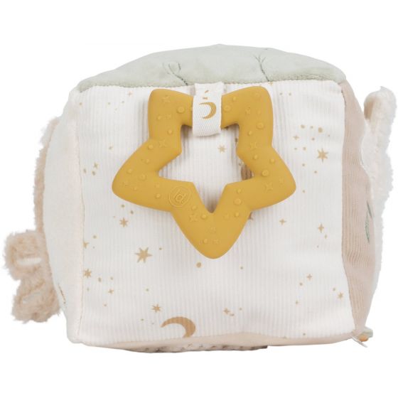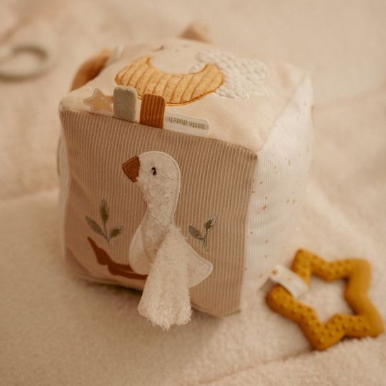 De Activiteitenkubus Newborn Naturals zit vol verrassingen voor kleine ontdekkers! Elke zijde nodigt uit om te spelen, met zachte stoffen, knispergeluidjes, speelse labeltjes en een veilig spiegeltje om in te kijken. Dit stimuleert de zintuigen en moedigt nieuwsgierigheid aan. De kubus is perfect om vast te pakken, te grijpen en te draaien, waardoor de fijne motoriek spelenderwijs wordt ontwikkeld. Dankzij de rustige, natuurlijke tinten past hij prachtig in elke babykamer. Een speels vriendje dat ontspanning en ontdekking combineert. Voor eindeloos speelplezier, elke dag opnieuw!