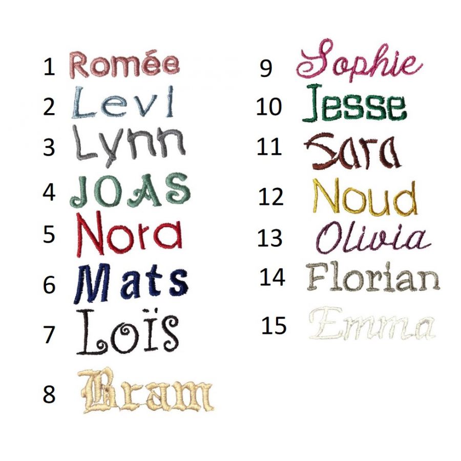 LET OP: Het bedrukbaar gebied is 6,5 cm. Hoe langer de naam, hoe 'kleiner' het wordt. Denk hierbij goed na welk lettertype u kiest. Heeft u vragen, mail ons gerust!